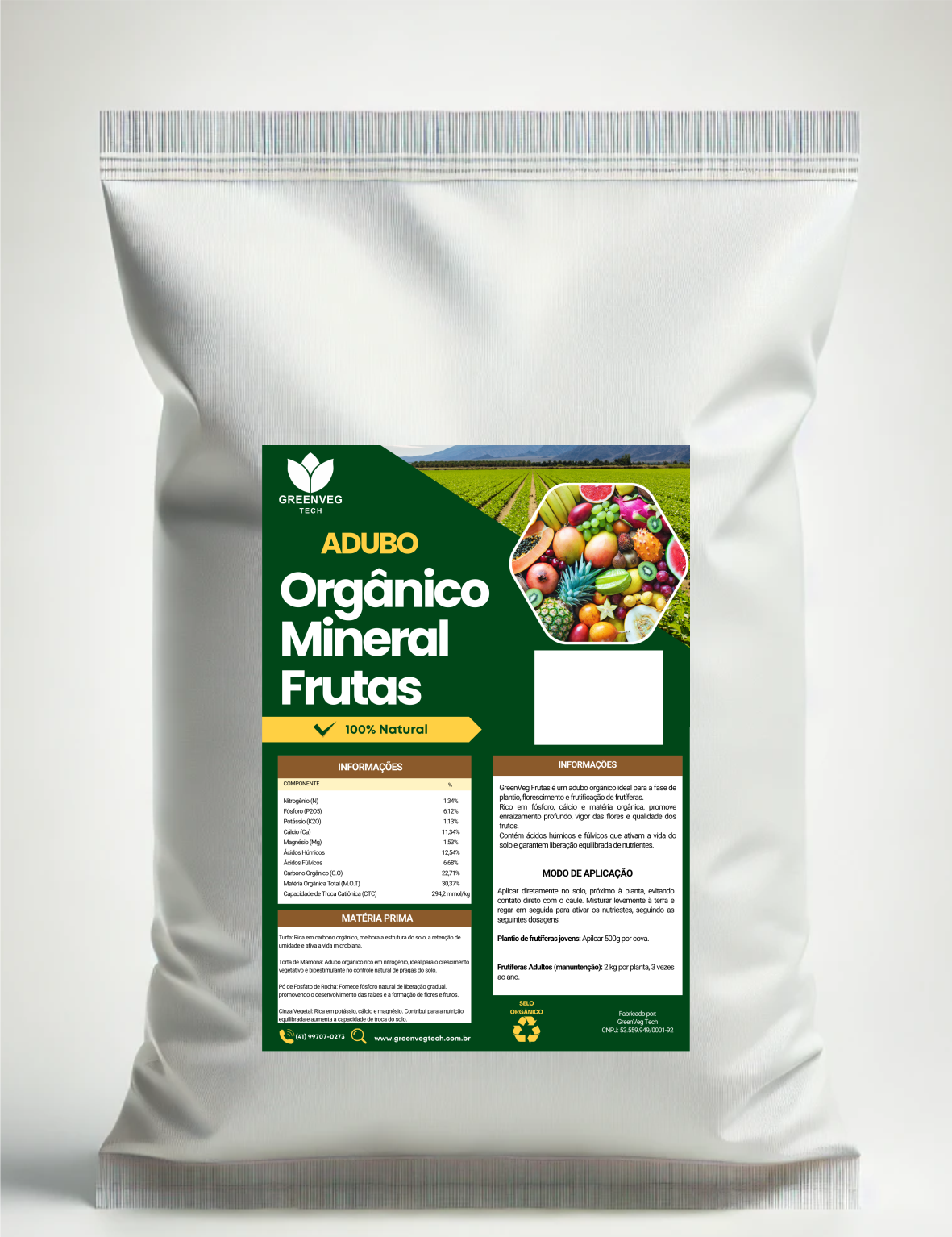 O GreenVeg Frutas é um adubo orgânico ideal para todas as fases das frutíferas: plantio, florescimento e frutificação.